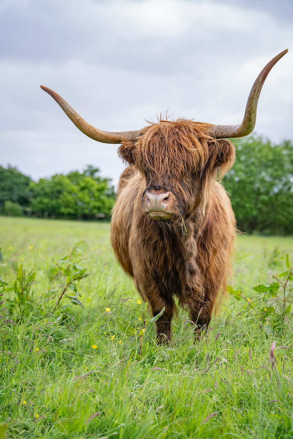 Our Highland fold began in May 2022 with a single 12-month-old heifer called Lily Alice from just outside Glasgow. Naturally, we couldn’t have just one so the collection began to expand. Just a few years later we have around 60 in total, with around 20 breeding cows as well as two bulls Balach and Mac.