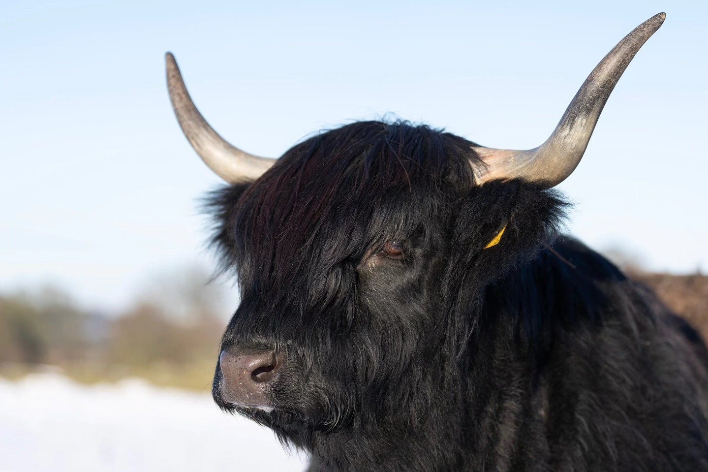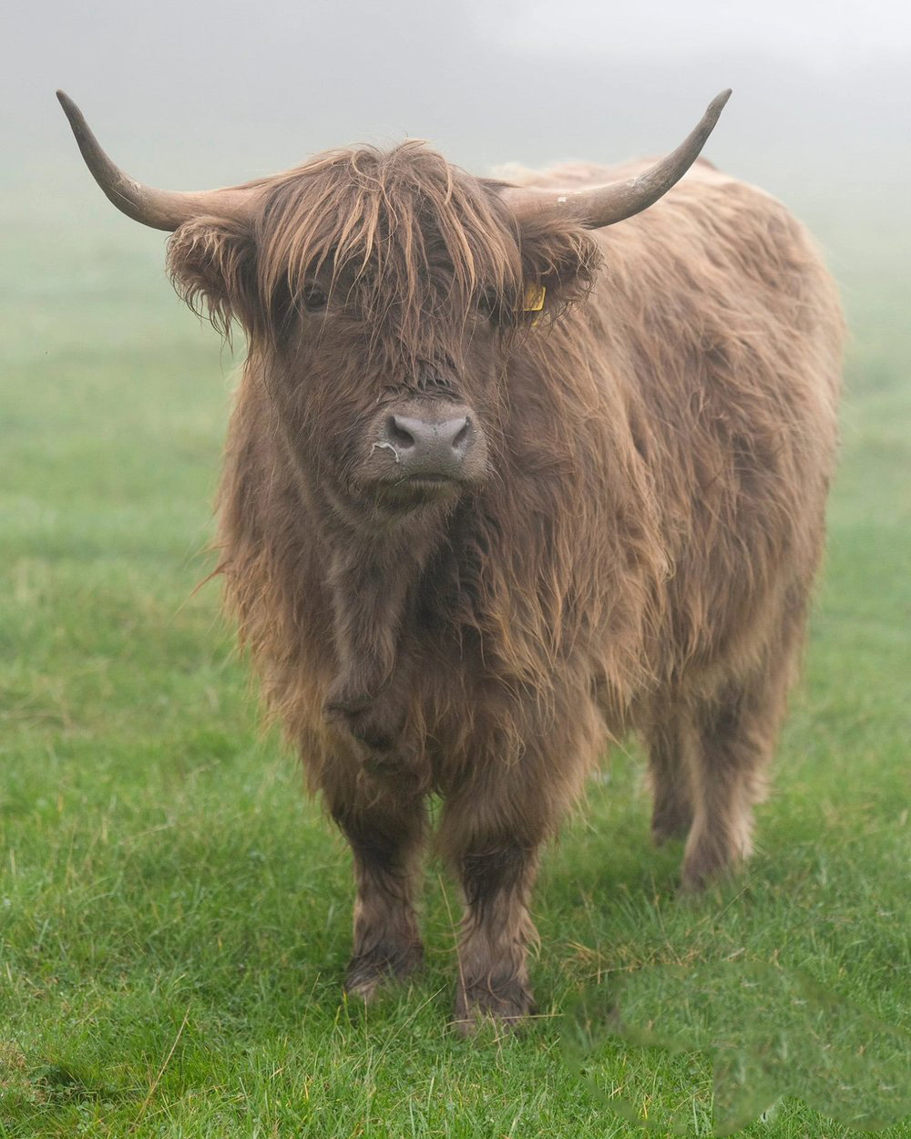 The Highland has the grandest head with a long fringe (that appears to cover the eyes) and horns that are long and darken towards the tip, it is these features that make them most memorable.